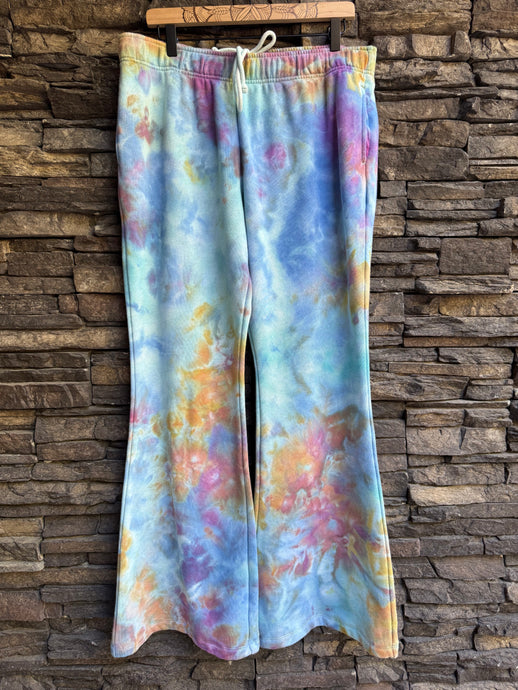 Women’s Large Crumpled Geode Flared Sweatpants with Pockets in ‘Bird Song’