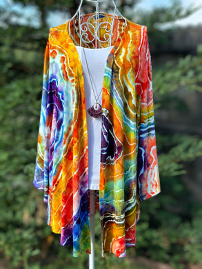 Custom Geode Tie Front Caftan in ‘Rustic Rainbow’ for Amanda
