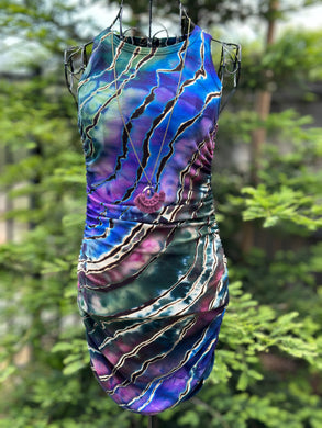 Custom Reverse Geode Side Ruched Bodycon Dress in ‘Abalone’ for Chelsea