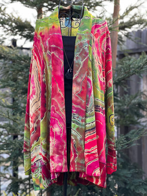 Custom Reverse Geode Thumbhole Cardigan in ‘Watermelon Tourmaline’ for Meaghan