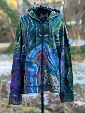 Custom Reverse Geode Lightweight Zip Uo Hoodie in ‘Abalone’ for Coleen