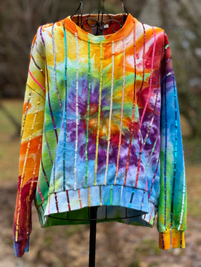 Custom Rainbow Gravity Spiral on Sequin Sweatshirt for Sarah