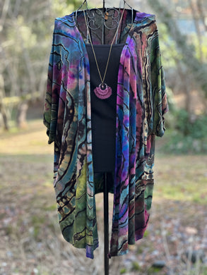 Custom Reverse Geode Kimono in Abalone and Lightweight Zip Up Reverse Geode Hoodie for Linda