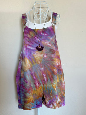 Women’s Large Cotton/Linen Lightweight Overall Shorts in ‘Lilac and Wasabi Wave’