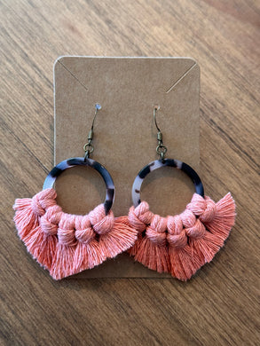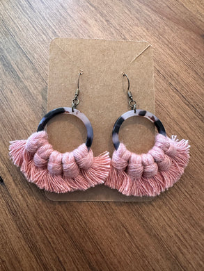 Dusty Pink on Blonde Tortoise Shell Ring Earrings