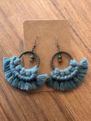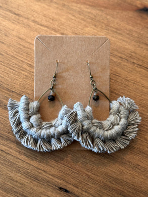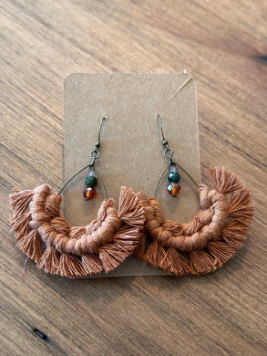 Taupe on Thin Antiqued Bronze Teardrops with Tourmaline Stone Accent Earrings