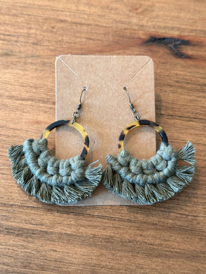 Olive on Amber Tortoise Shell Rings with Knotted Row Earrings