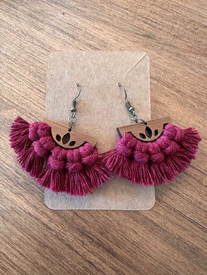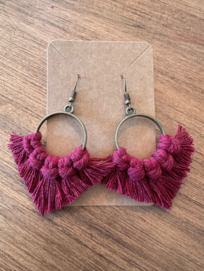 Wine on Antiqued Bronze Rings V-Cut Earrings