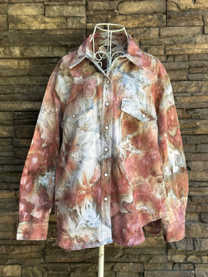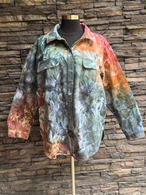 Women’s Oversized 3X (fits more like a 4X) Denim Button Up Long Sleeved Shirt in ‘Pinot Sage & Teal’