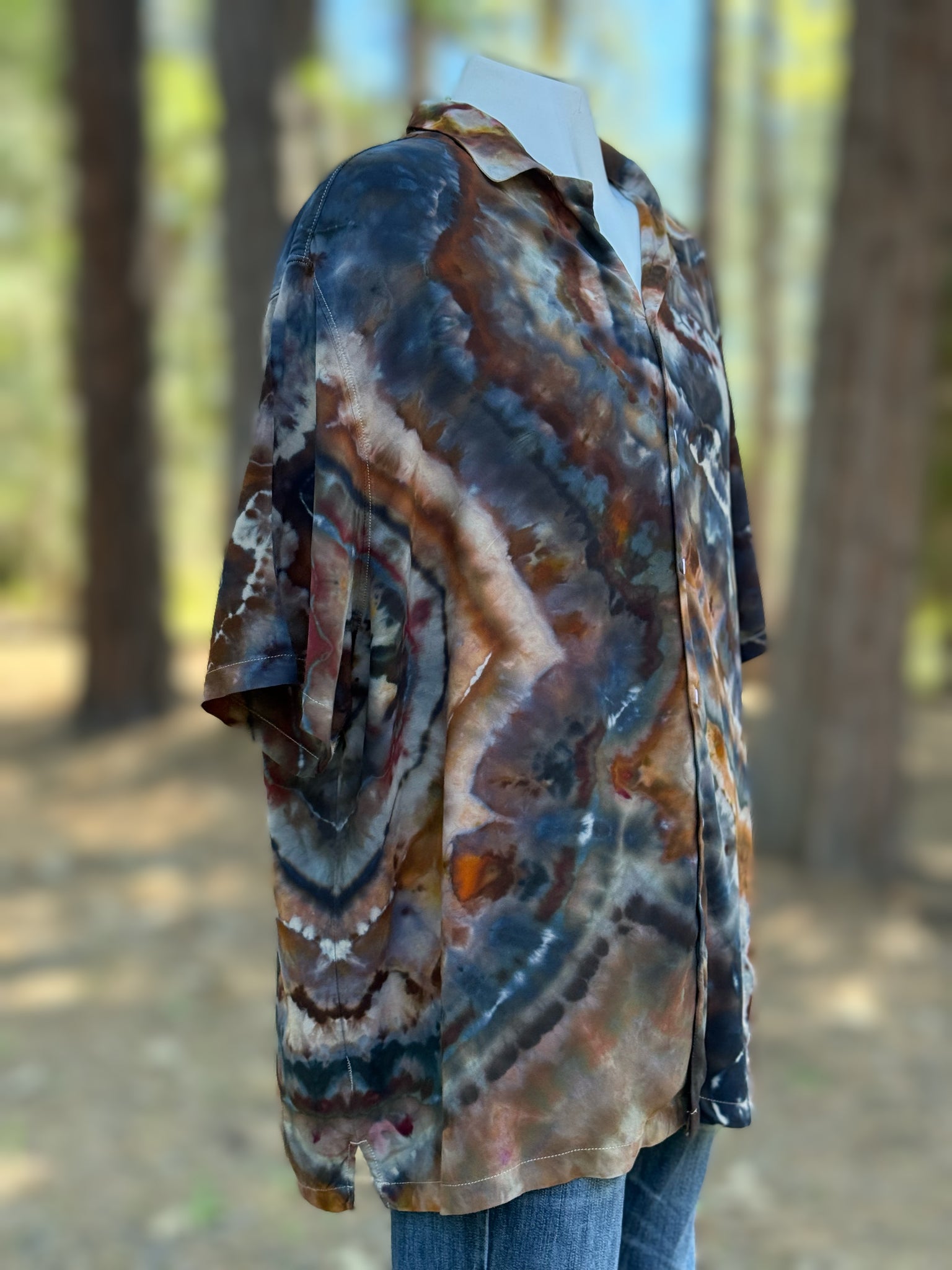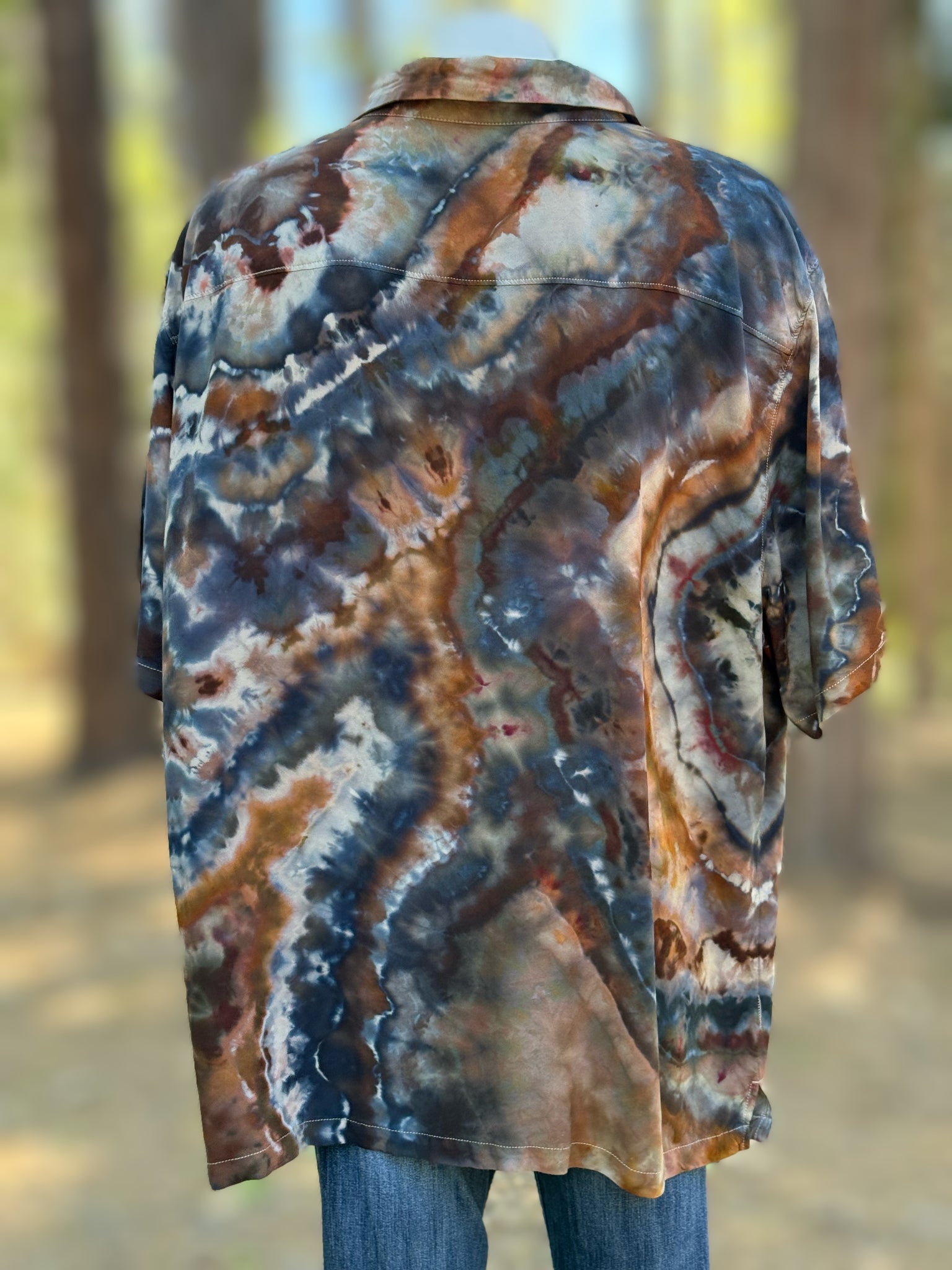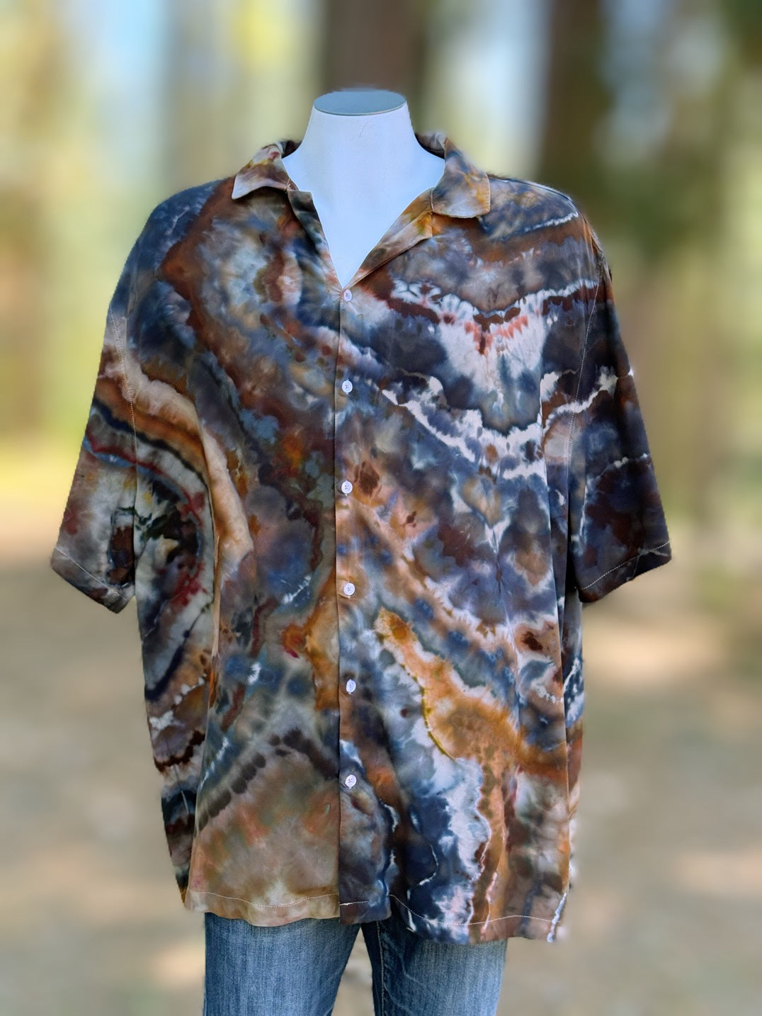 Men’s 2XL 100% Rayon Geode Button Up Short Sleeved Shirt in ‘Turkey Tail Mushroom’