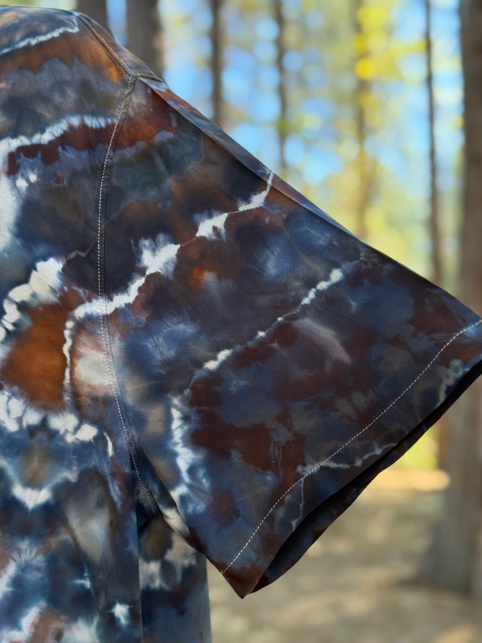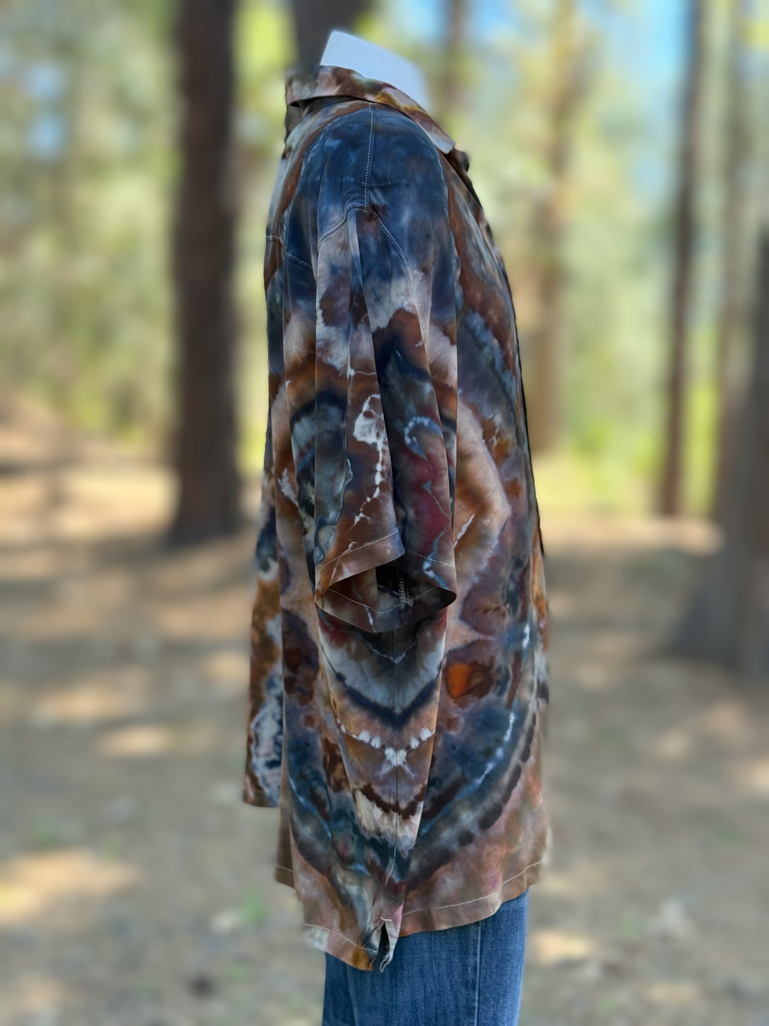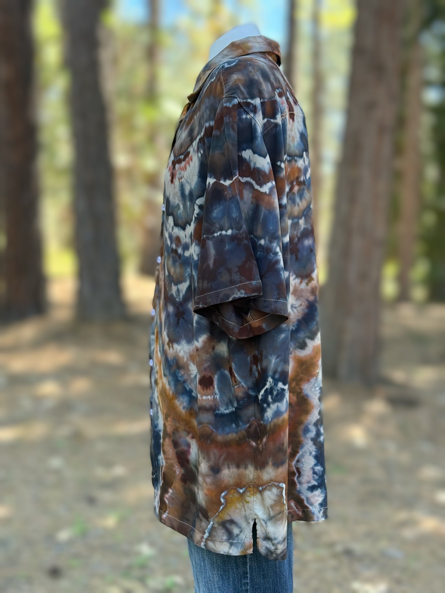Men’s 2XL 100% Rayon Geode Button Up Short Sleeved Shirt in ‘Turkey Tail Mushroom’