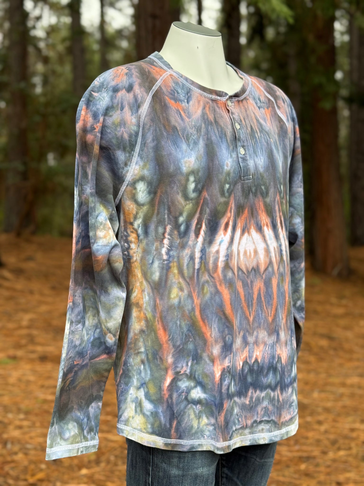 Men’s XXL Cosmic Roll Long Sleeved Henley in ‘Moss & Ember’