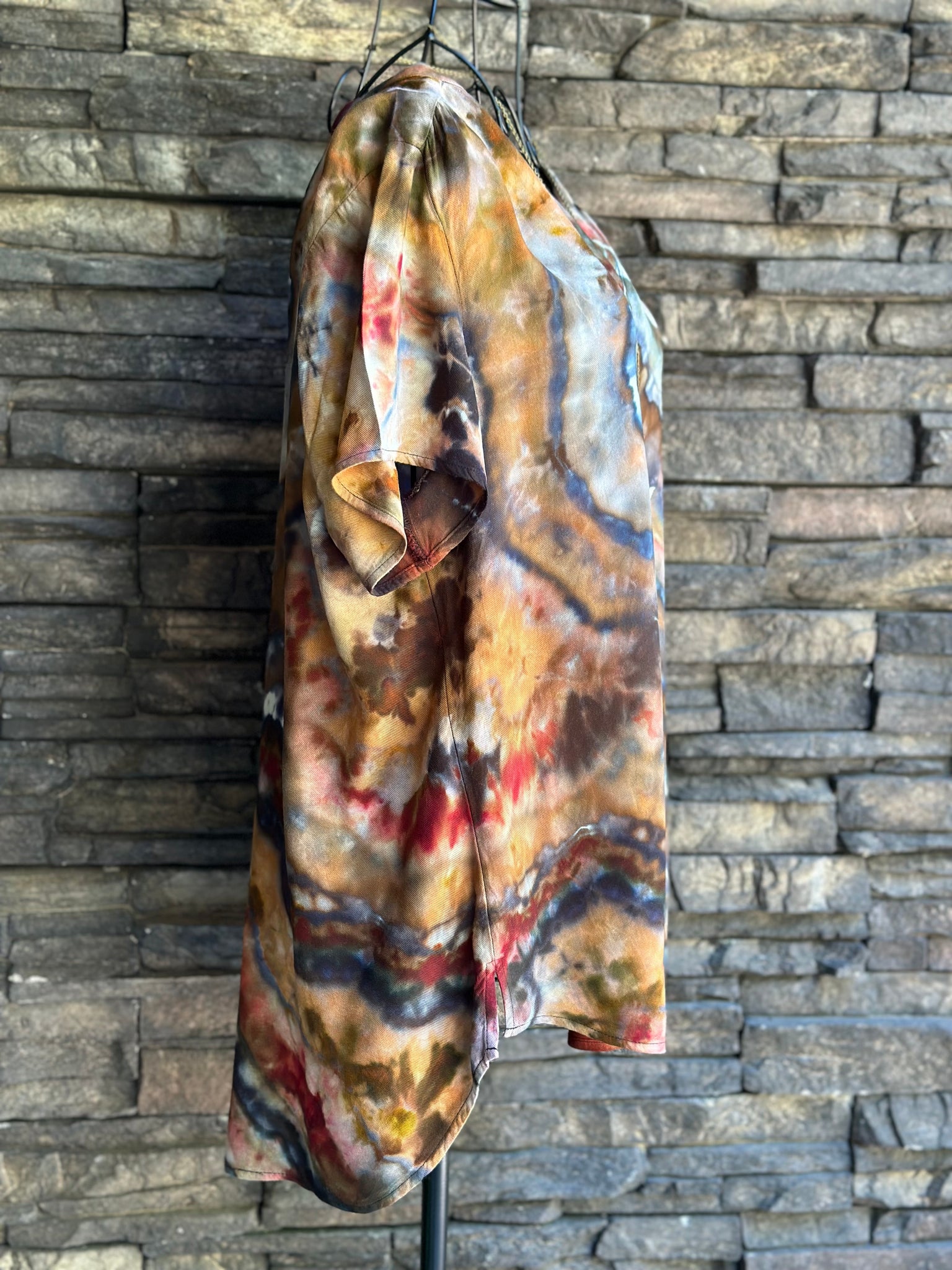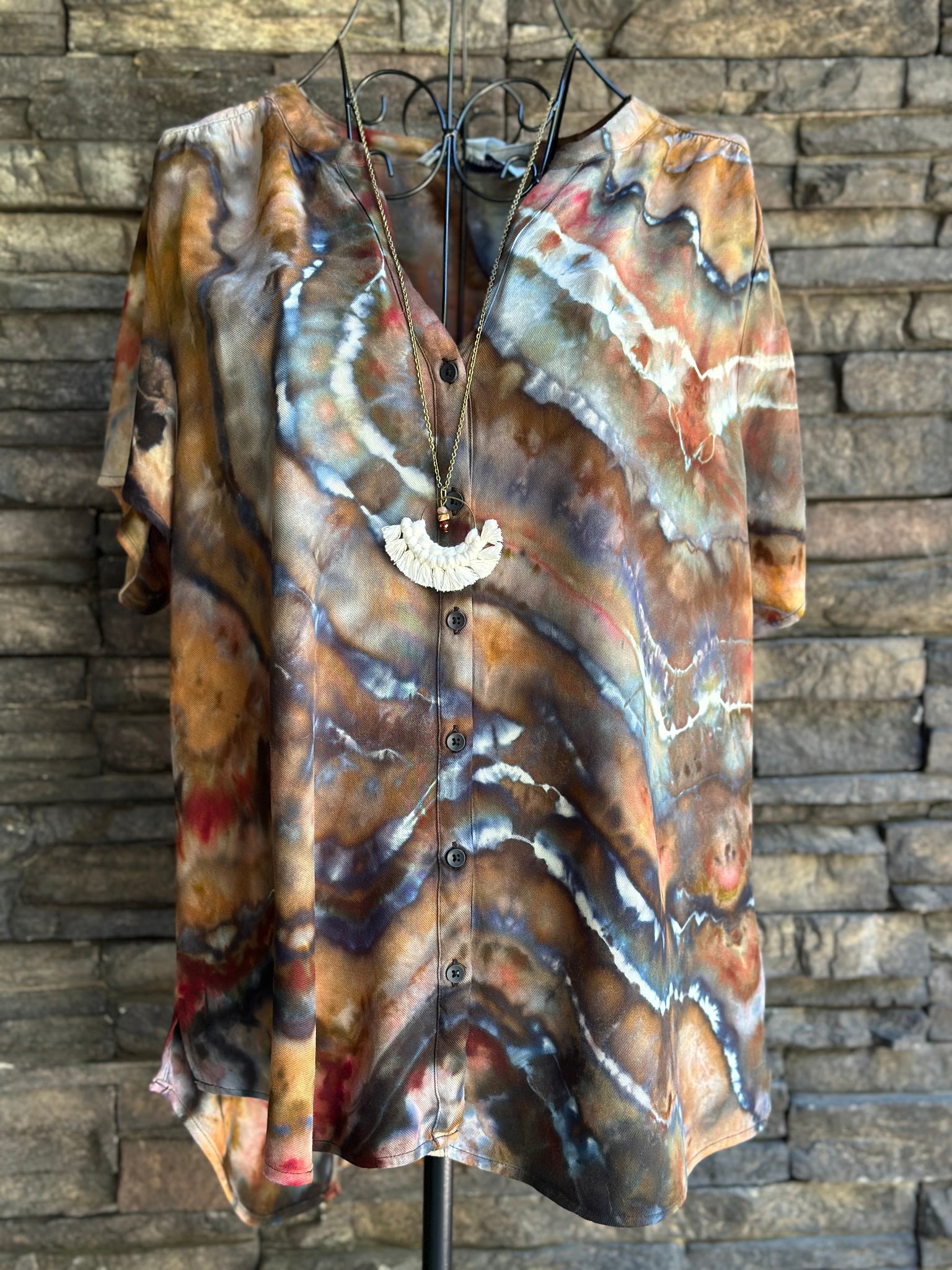 Women’s Medium Geode Woven 100% Viscose Button Up Blouse Top in ‘Turkey Tail Mushroom’
