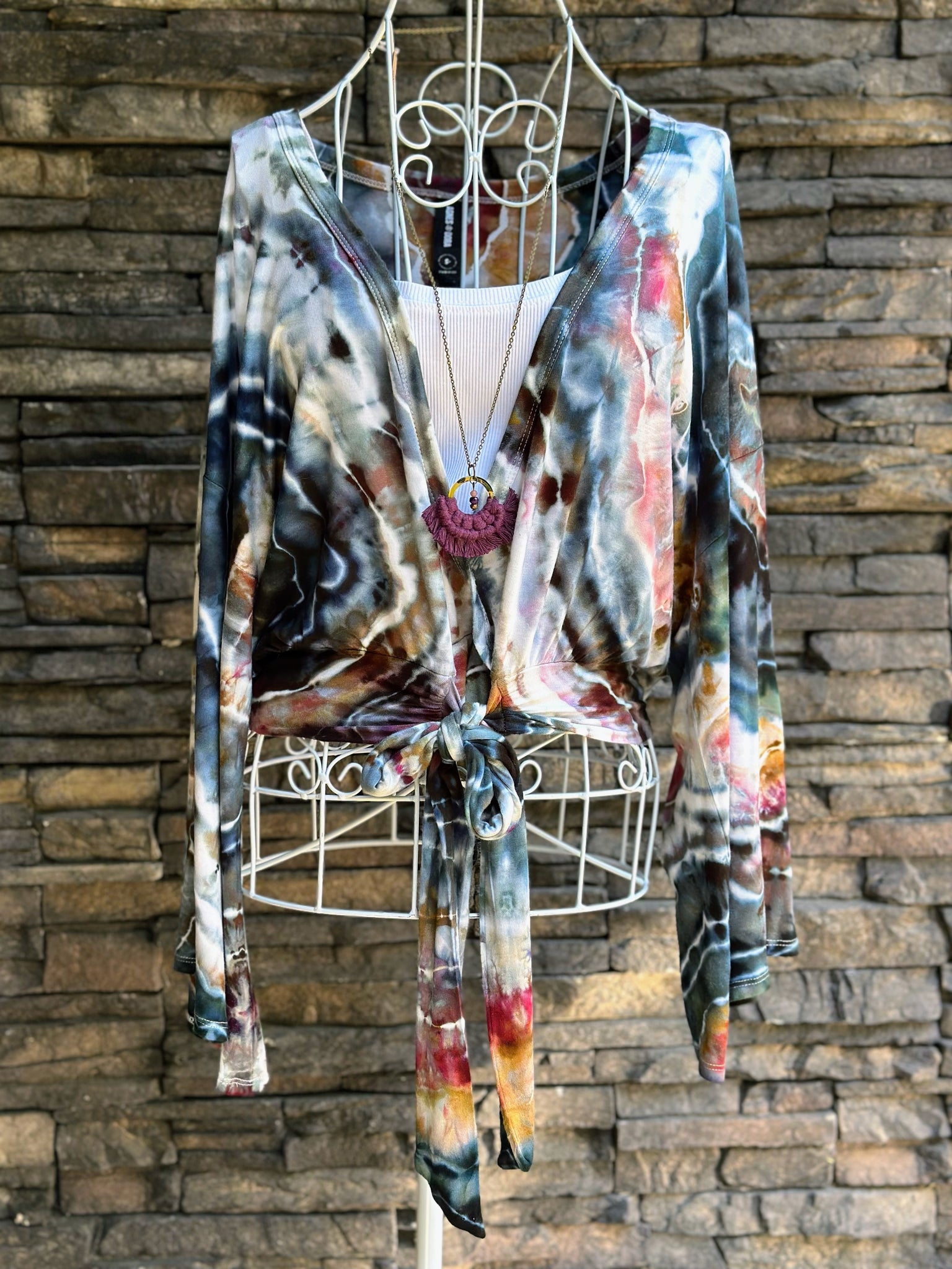 Top can be worn front or backwards, and tie can be worn in the front or back as well.