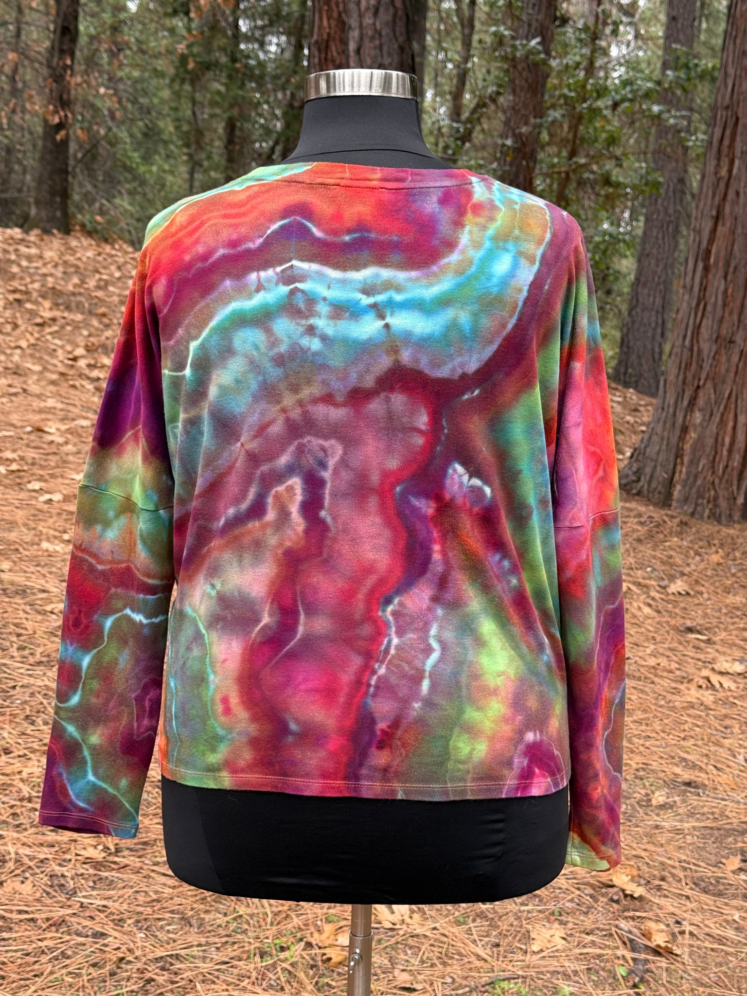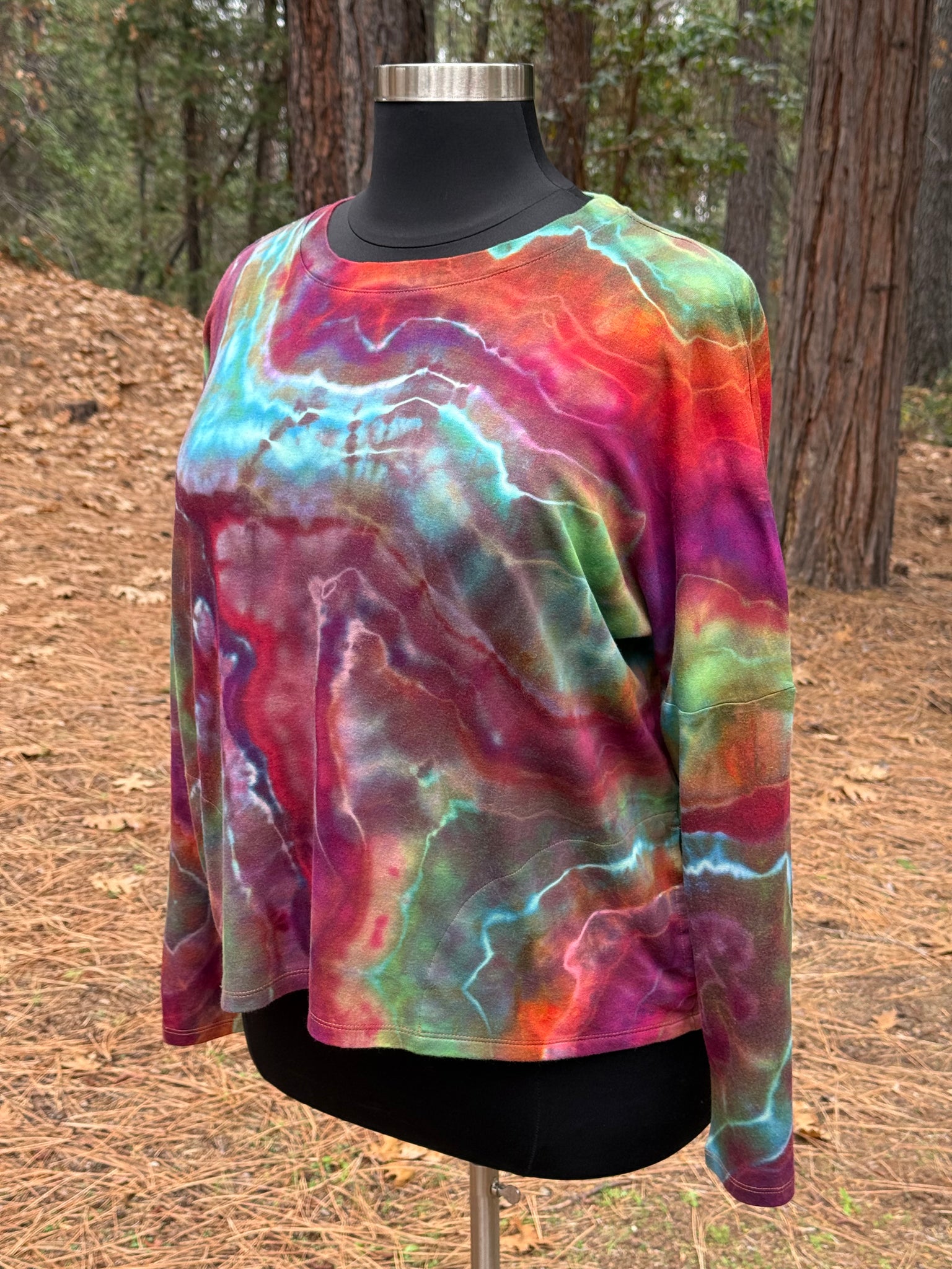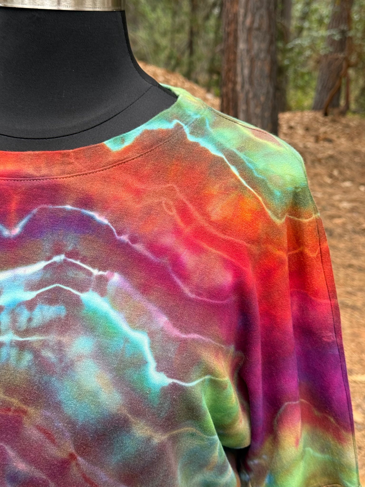 Not as thick as a sweatshirt, but thicker than t-shirt material