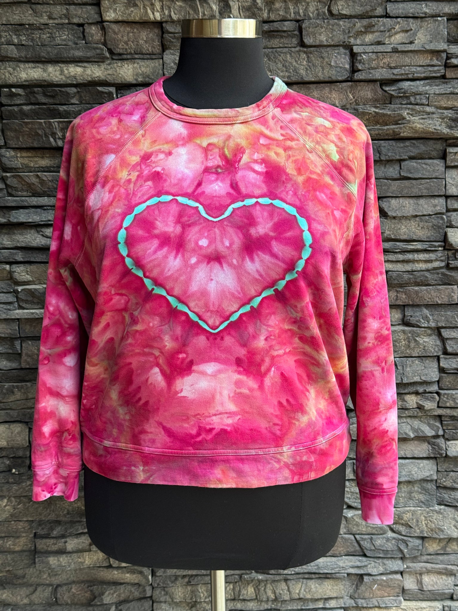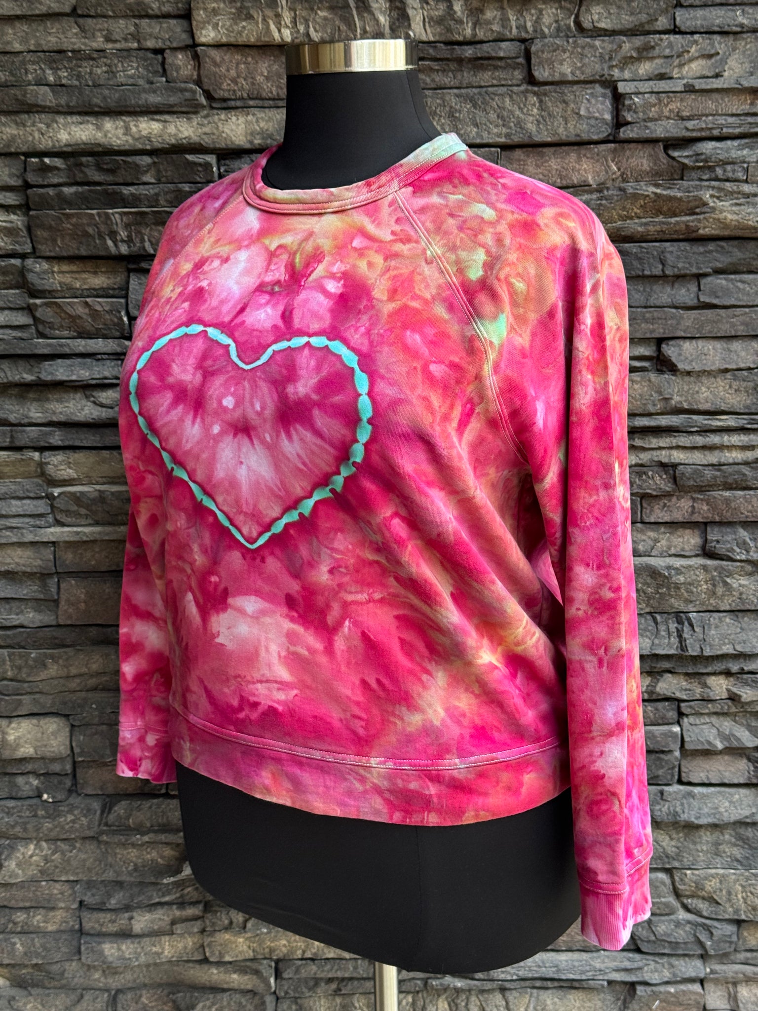 Women’s XXL (fits more like an XL) 100% Cotton Heart Sweatshirt in ‘Candypop’